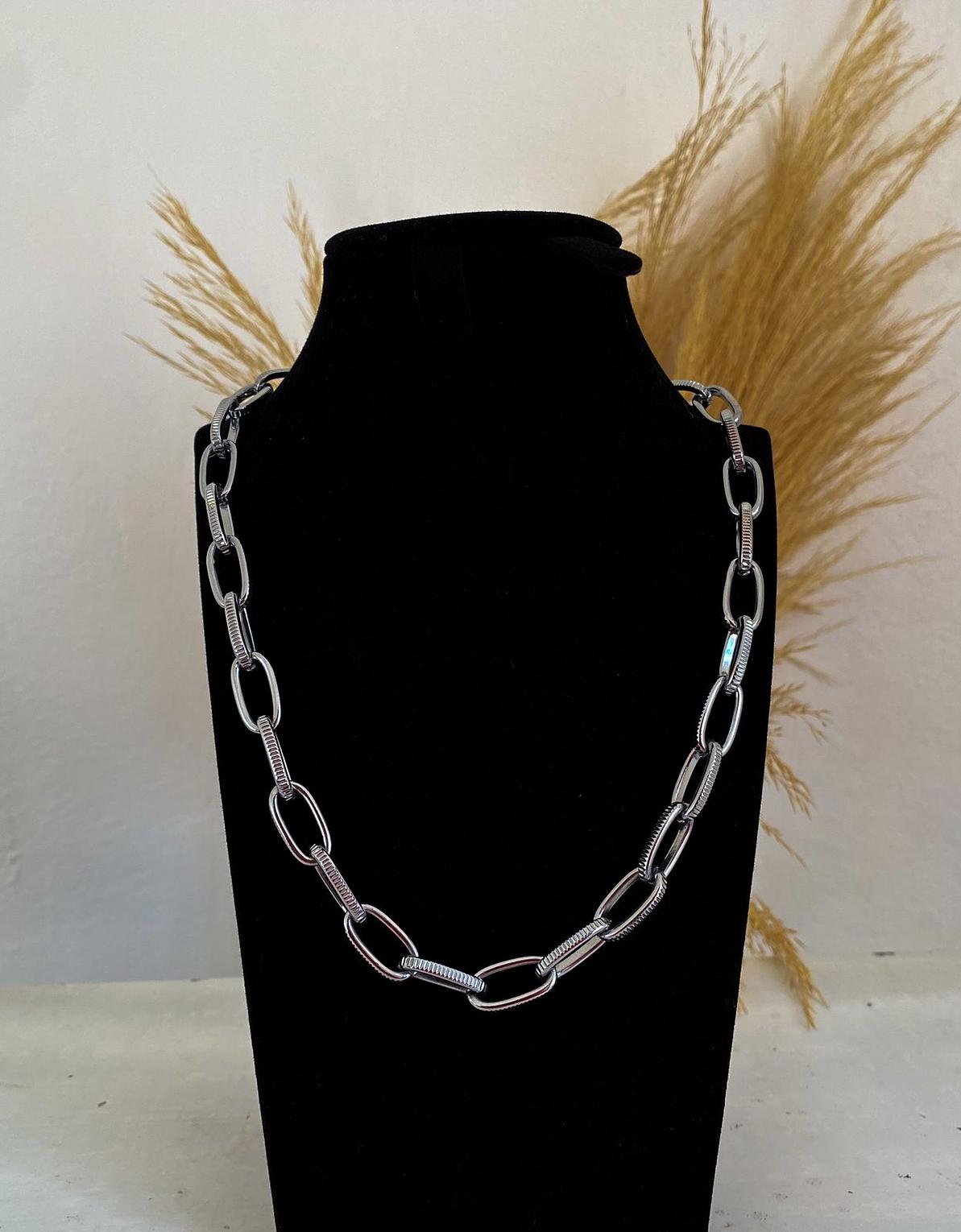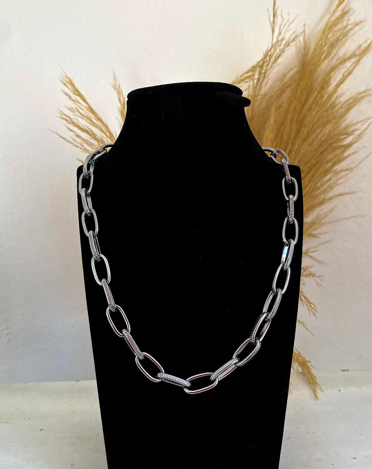 Make a bold and modern statement with this stylish chunky link chain. Its unique design features alternating smooth and ribbed links, adding a touch of sophisticated texture to your look.