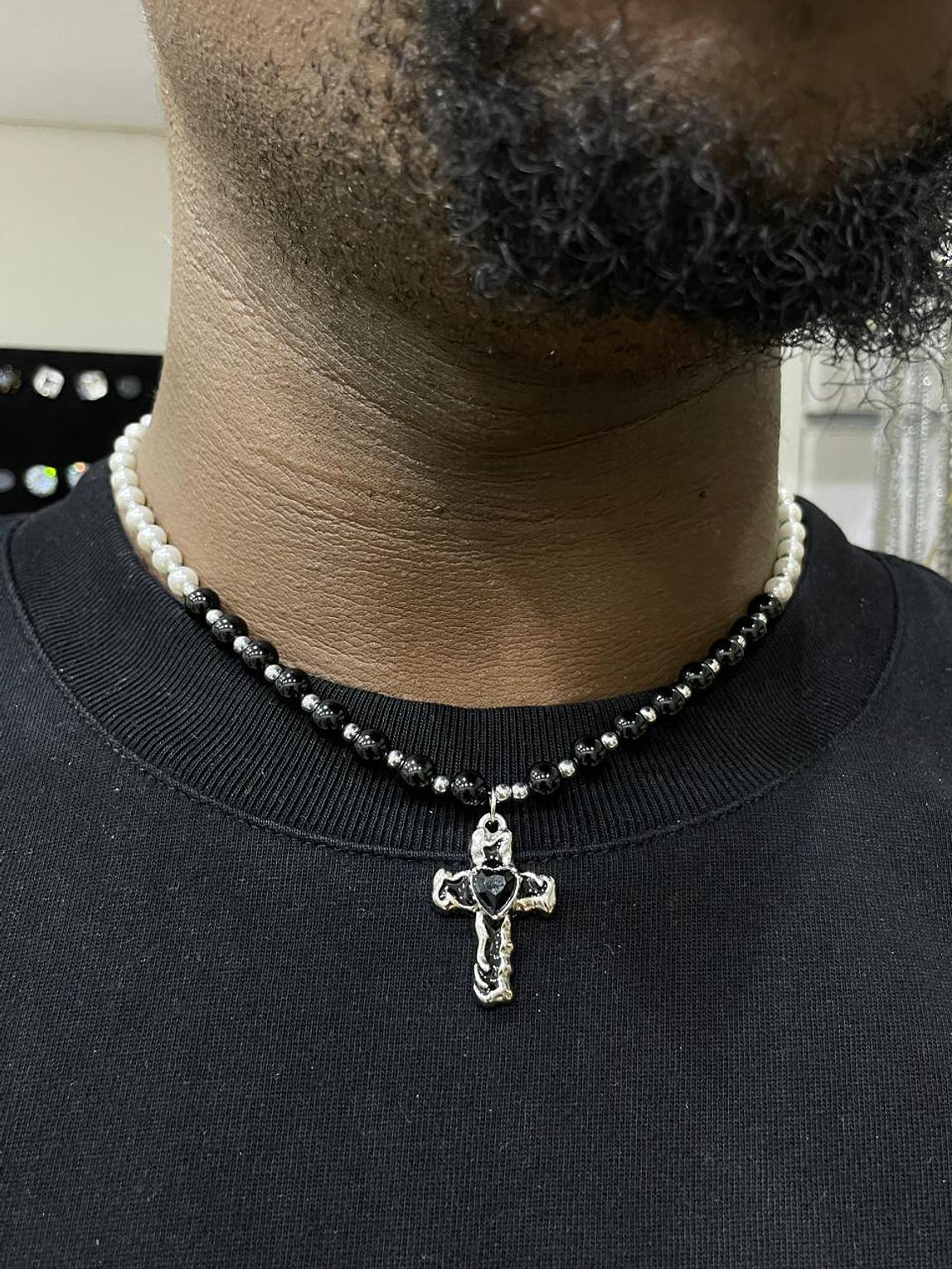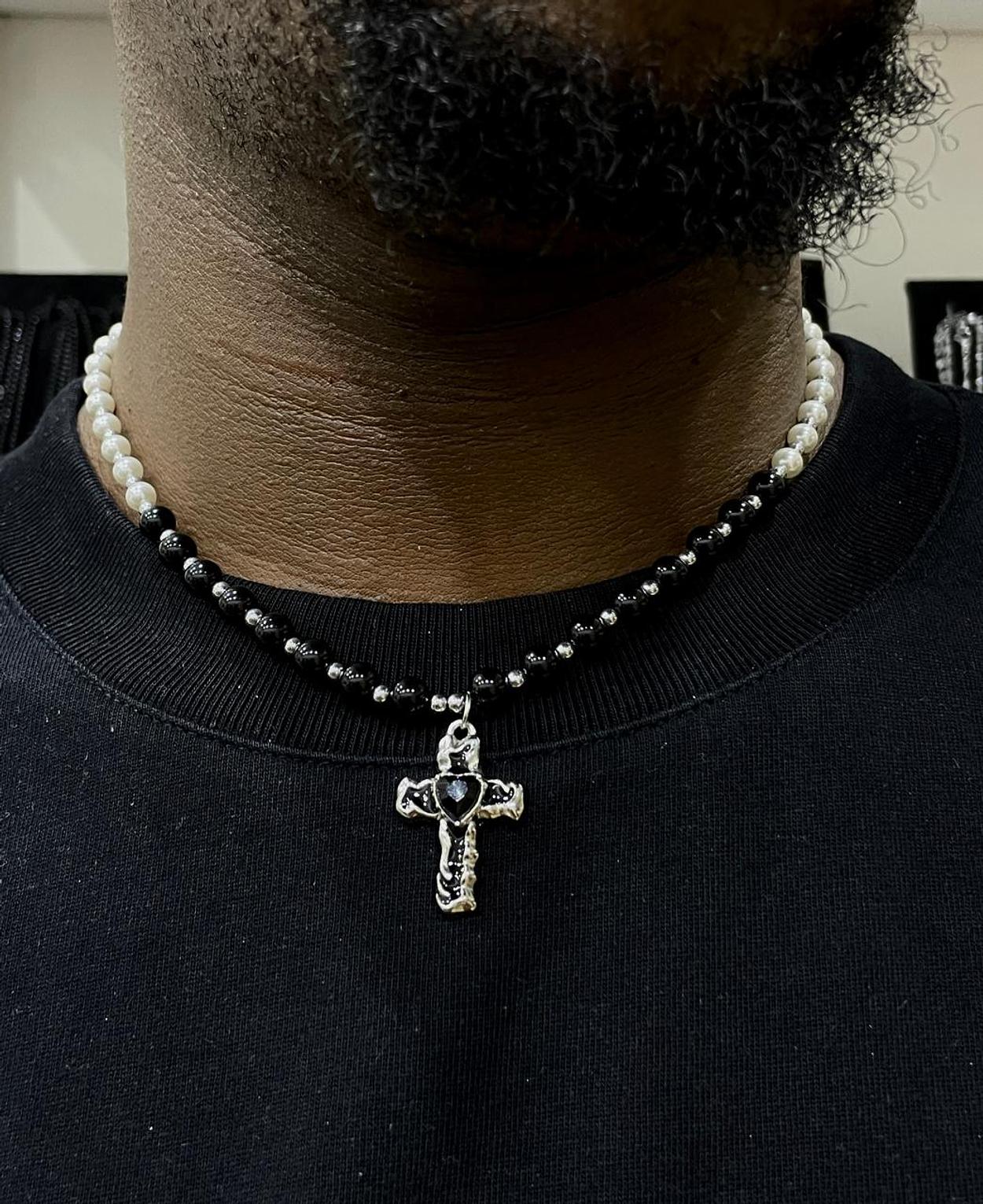 This Divine Grace Stainless Steel Cross Necklace combines spiritual symbolism with modern craftsmanship to create a meaningful accessory for daily wear. The centerpiece features a beautifully detailed stainless steel cross pendant with intricate engravings and a sleek polished finish that catches light beautifully. The necklace is strung with an alternating pattern of lustrous white pearls and sophisticated black beads, creating a striking contrast that enhances the pendant's visual impact. Crafted from high-quality stainless steel, this religious jewelry piece offers exceptional durability, tarnish resistance, and hypoallergenic properties, making it suitable for sensitive skin and everyday wear. The versatile design complements both casual and formal attire, while the secure clasp ensures comfortable all-day wearing. Whether worn as a personal statement of faith or given as a meaningful gift for baptisms, confirmations, or religious milestones, this cross necklace serves as a timeless reminder of spiritual devotion and divine protection.