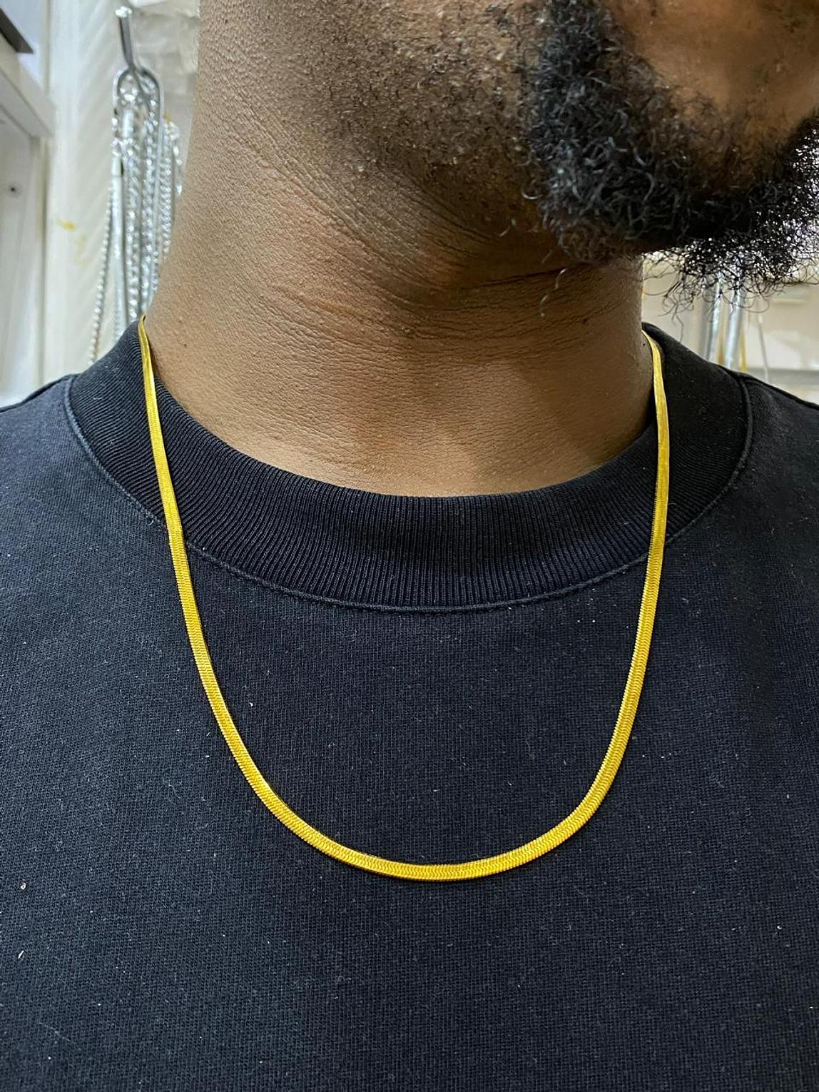 Experience fluid elegance with the Gilded Serpentine Chain, a sleek and smooth necklace that drapes beautifully. Its radiant golden finish offers a luxurious touch to any attire.