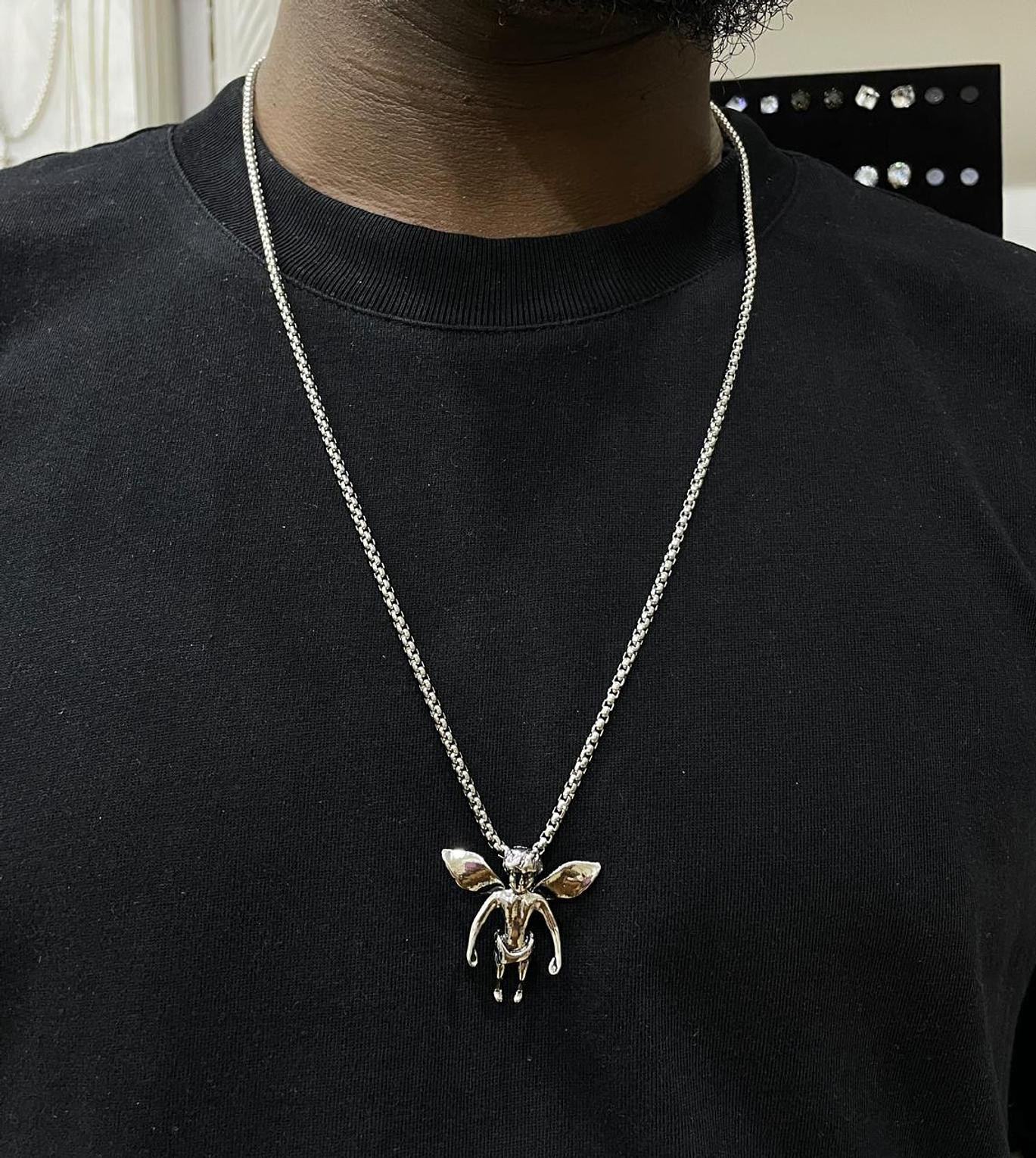The Guardian Angel Stainless Steel Pendant Necklace represents divine protection and spiritual guidance through its beautifully detailed angel design that captures both strength and grace. This stunning pendant showcases meticulously crafted wings with textured detailing and a flowing silhouette that symbolizes heavenly protection and comfort. Made from premium stainless steel with a lustrous silver finish, this necklace offers exceptional durability, hypoallergenic properties, and complete tarnish resistance, ensuring it maintains its brilliant shine through years of wear. The pendant hangs elegantly from a classic stainless steel chain that complements the overall design while providing secure and comfortable wear. Whether worn as a personal reminder of spiritual protection, given as a meaningful gift for religious occasions, or chosen to honor the memory of loved ones, this angel necklace serves as a powerful symbol of faith and divine presence. The versatile design transitions seamlessly from casual daily wear to special occasions, making it an ideal accessory for anyone seeking to carry spiritual significance close to their heart. The non-tarnish coating ensures minimal maintenance while preserving the piece's mirror-like finish.