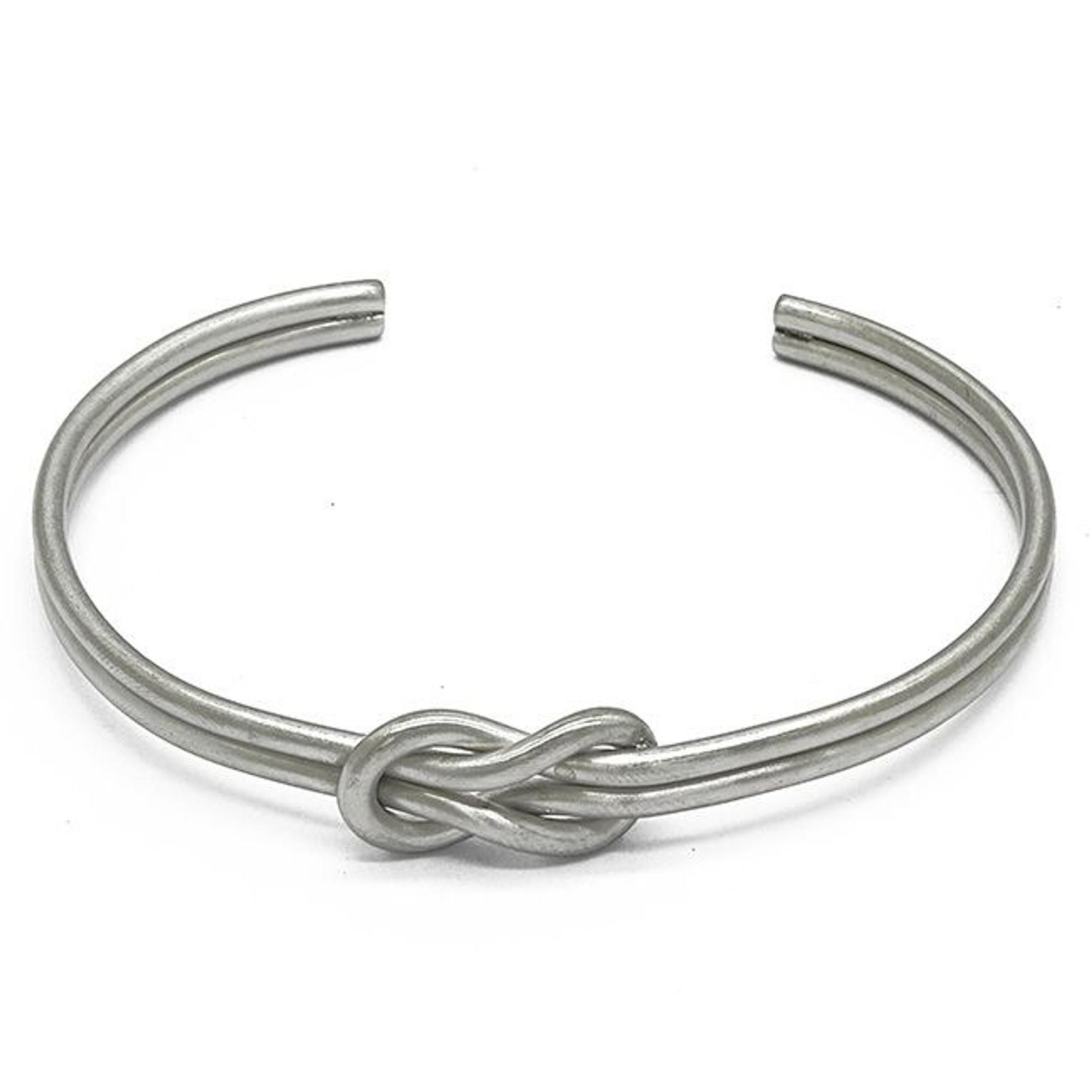Crafted from polished, tarnish-resistant metal, this Stunning Sterling Knot Cuff bracelet showcases a central knot — representing unity, resilience, and timeless bonds. Its slim, adjustable design offers a comfortable fit for any wrist, while the minimalist silhouette makes it perfect for both solo wear and stacking. It showcases a meticulously handcrafted love knot as its central focal point, representing infinite love, friendship, and unbreakable bonds. The smooth, polished band gracefully curves around the wrist with an open-end design that allows for comfortable adjustment and easy wear. The love knot detail is seamlessly integrated into the band, creating a sophisticated piece that speaks to both style and sentiment.