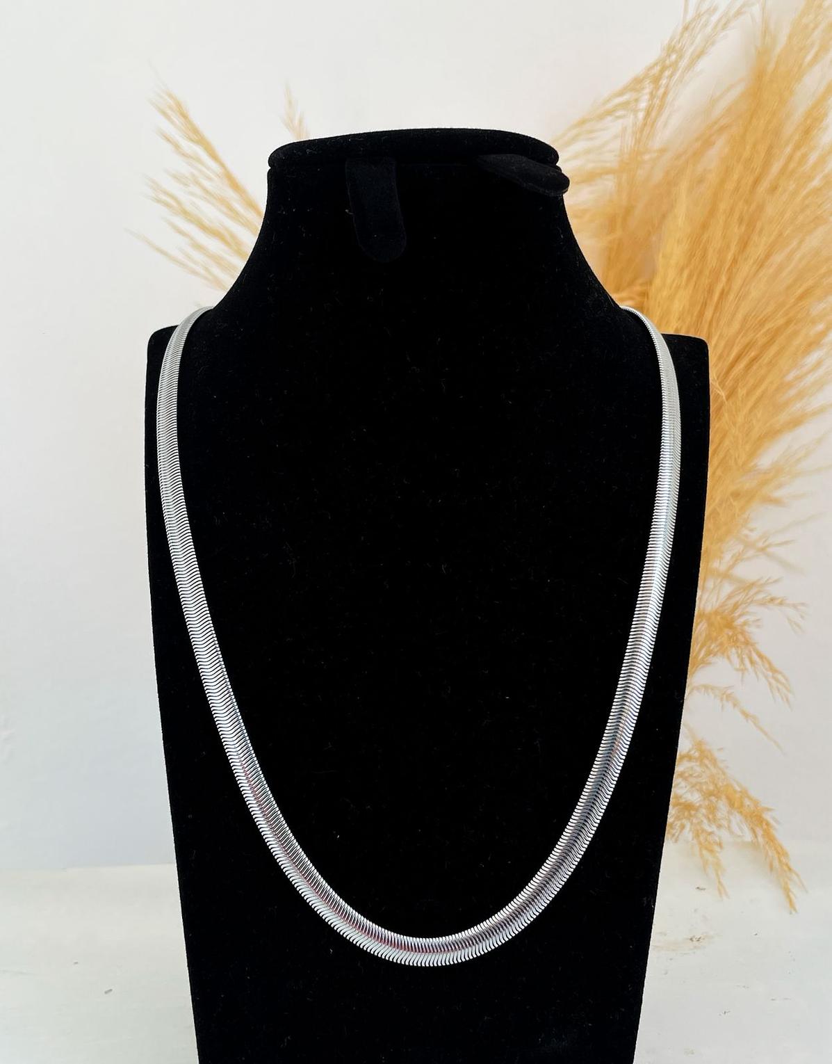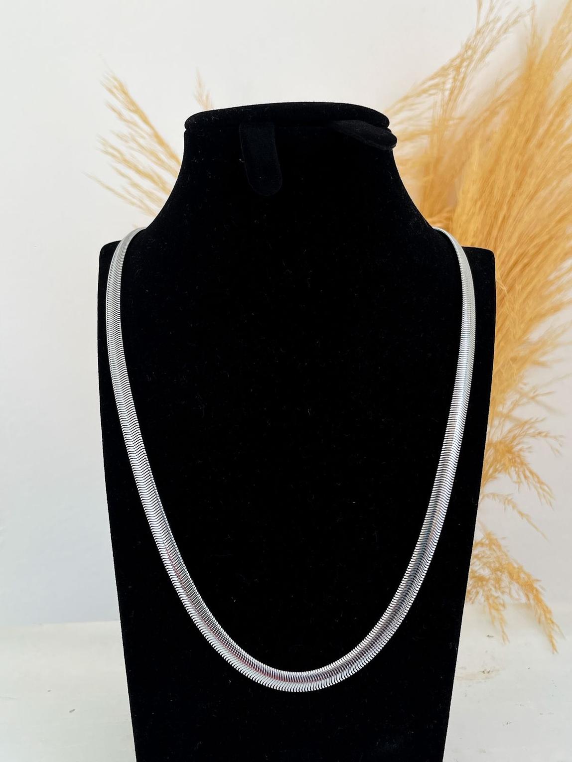 Experience a sleek and modern look with this stunning snake chain. Its smooth, flexible design drapes elegantly, creating a sophisticated liquid-metal effect that catches the light beautifully.